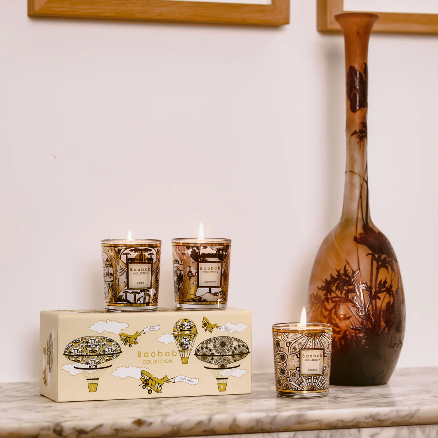 The decorations revisit the successes of Winter 2023 and 2024, featuring the Afrika and Caravane mini candles, now joined by our new and festive winter mini candle, also available in larger formats: the Rosace candle.