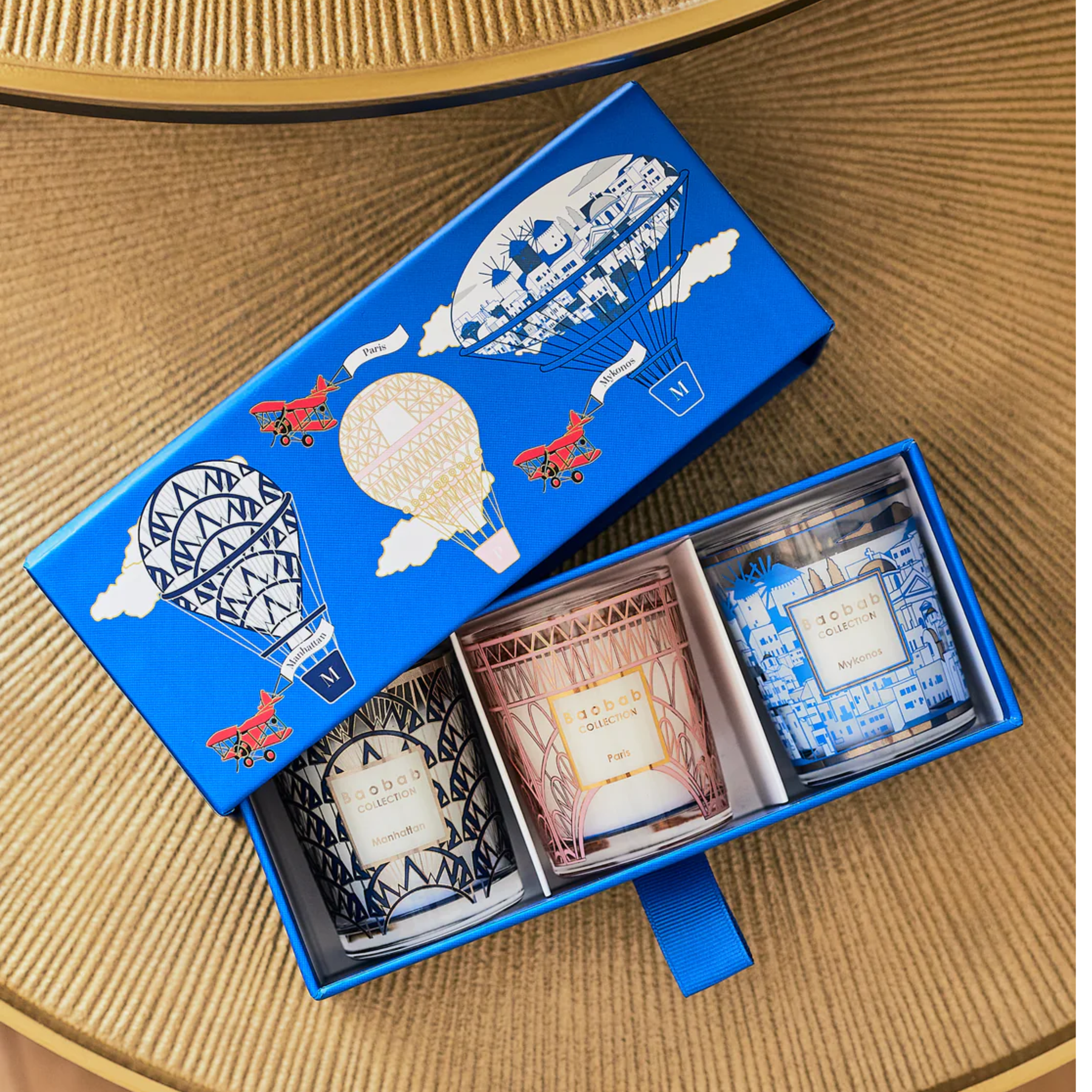 A blue "Mykonos" box to stay under the Cycladic sun after life in New York and a gastronomic stopover in Paris...