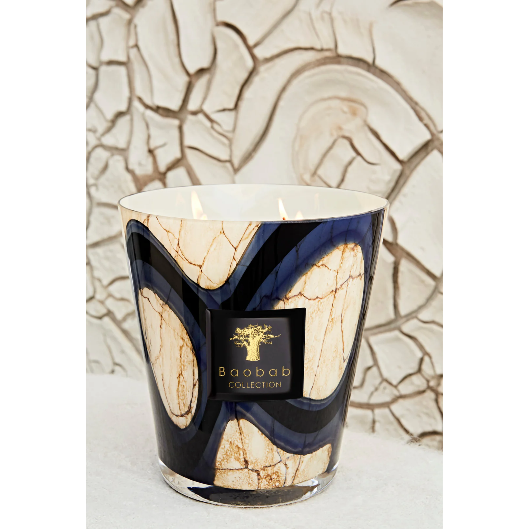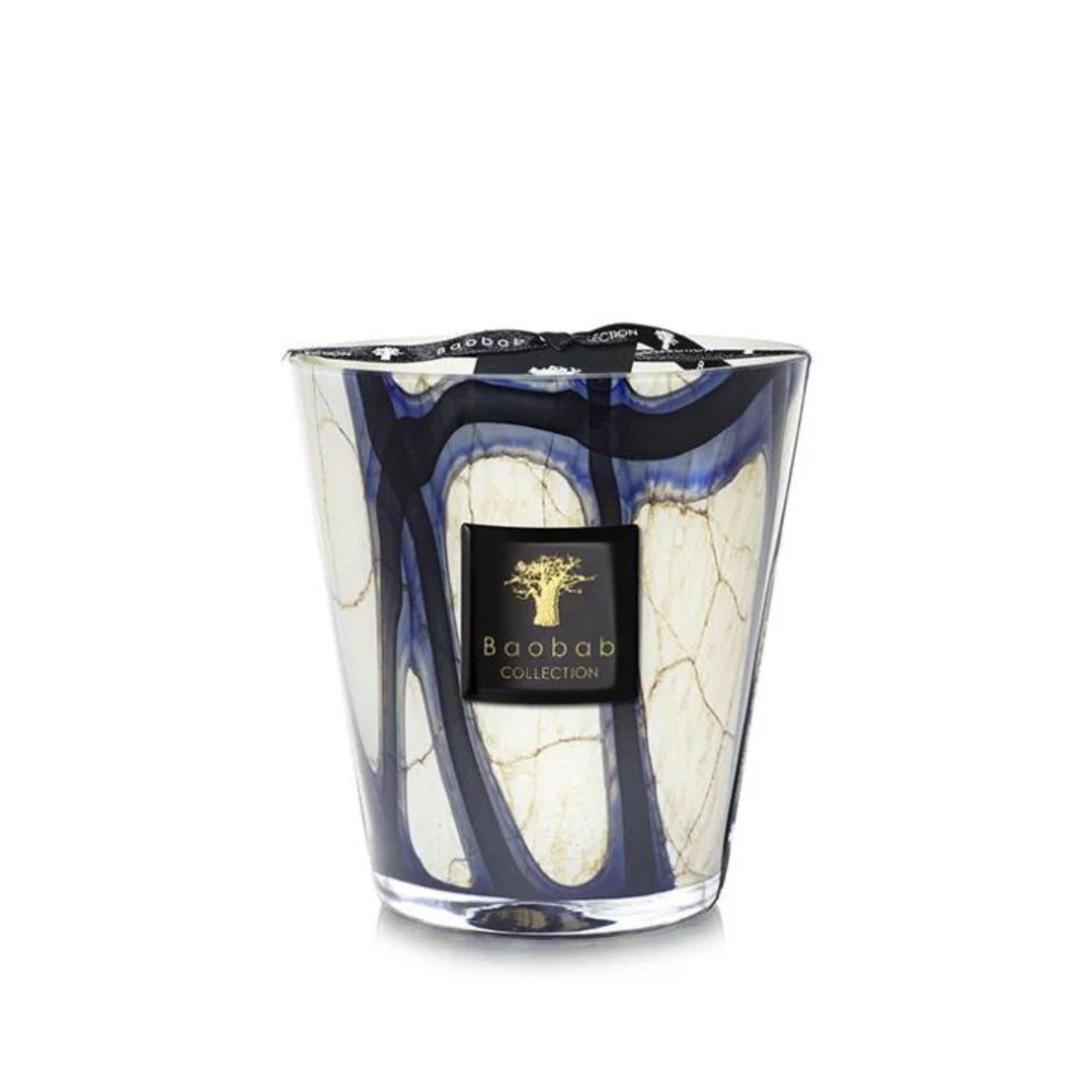 The scented candle is a timeless piece of sophistication and elegance. Its marbled glass with intense blue effects perfectly illustrates the amazing personality of Lazuli Stones.
