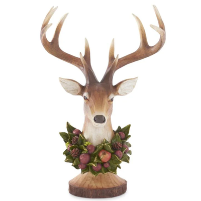 Resin Woodgrain Deer Bust w/Wreath 18.5"
