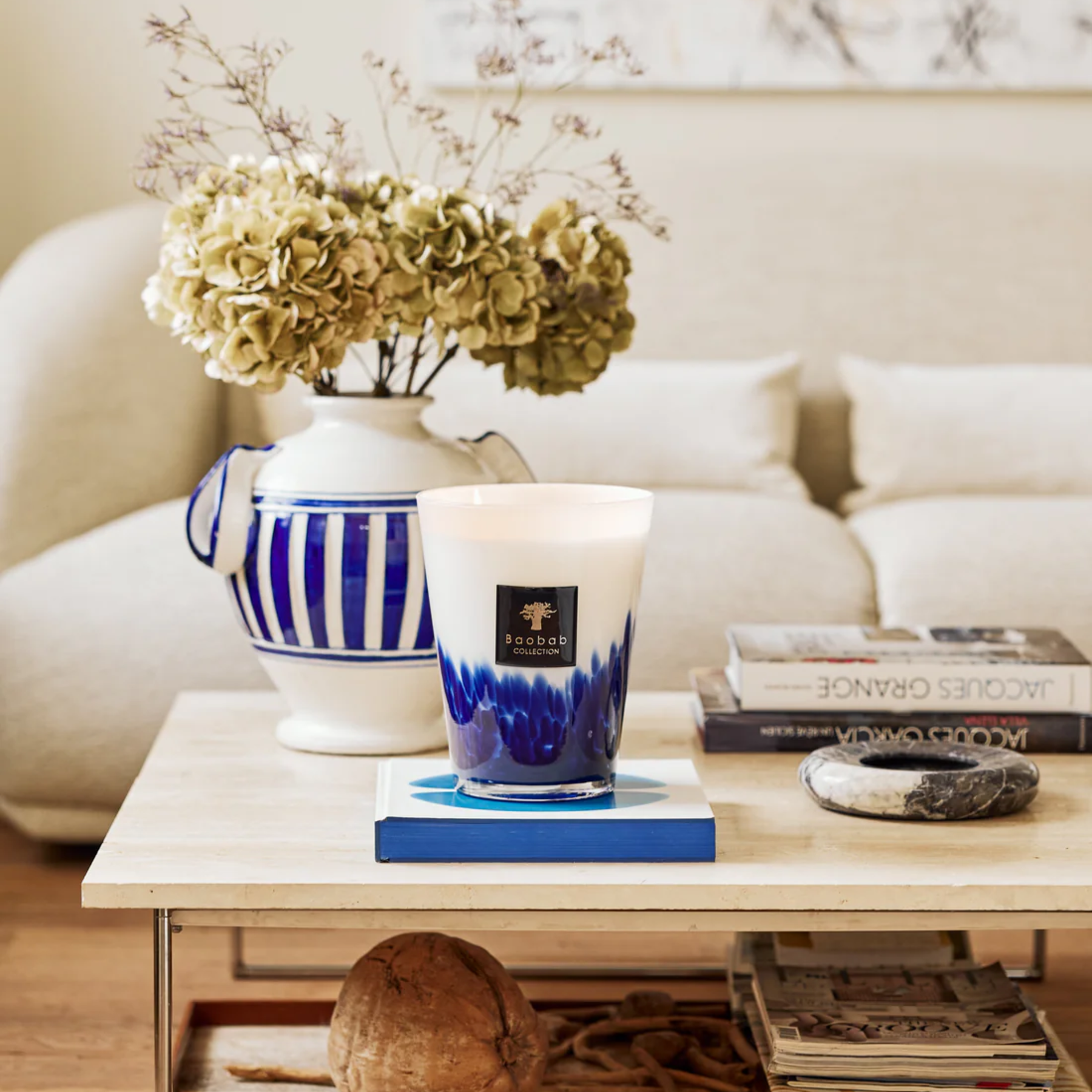 The Feathers Touareg scented candle references the Tuaregs’ majestic garments with a glass covered in blue details. Each glass is unique as the color is placed in a random fashion, giving it a feathered tribal effect. Its fragrance will take you to the gates of the Sahara.