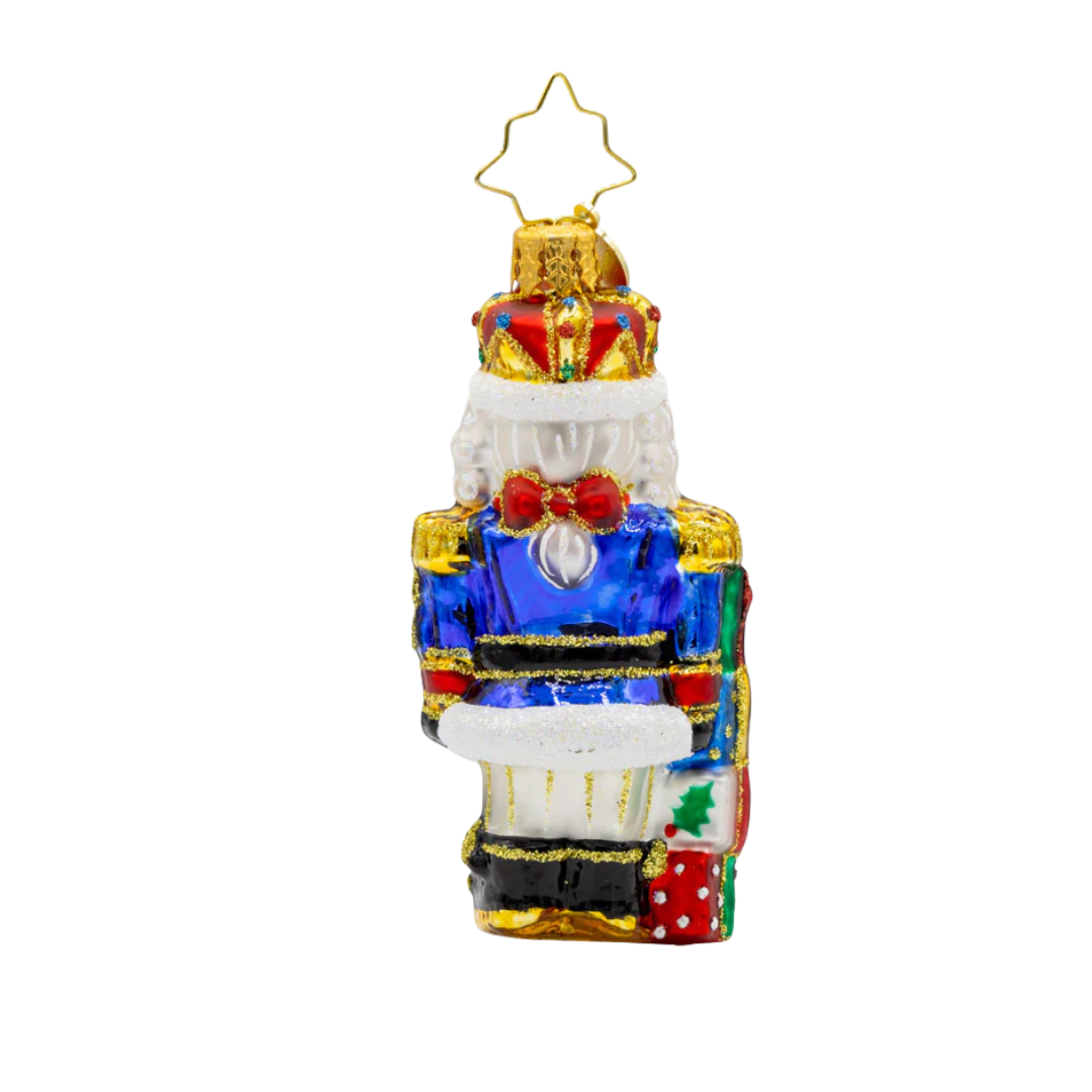 A crown jewel of Christmas decor, this regal nutcracker stands guard over your holiday treasures.