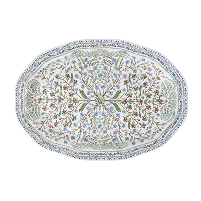 Festooned with a burst of intricate leaves, charming wildflowers, and a scalloped rim with tiny garlands of blossoms in exquisite detail, this enchanting platter makes serving up everything from charcuterie to the main course a delicious work of art.